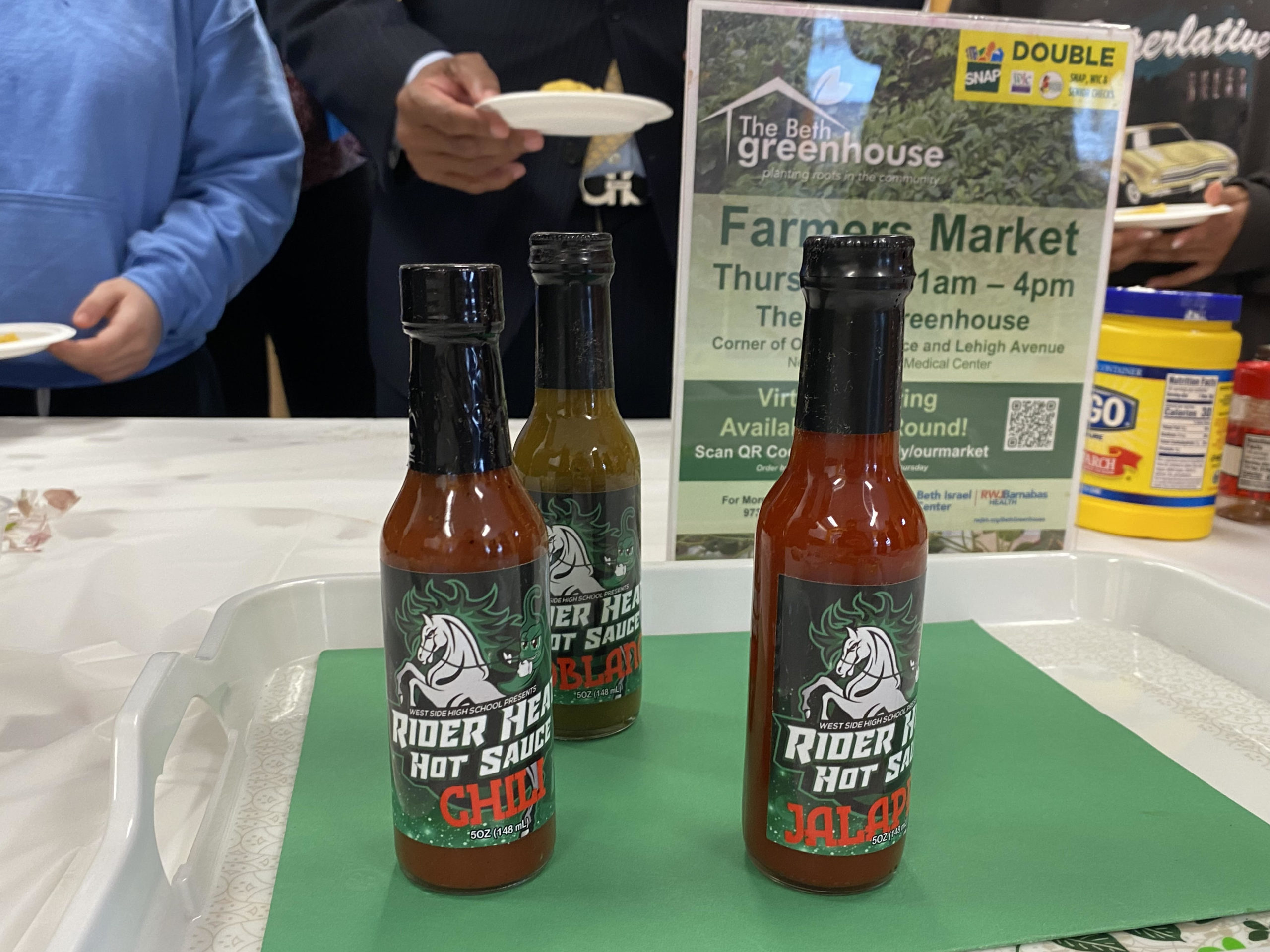 Using the herbs and produce grown on the urban farm, students developed an artisan hot sauce called “Rider Heat” after the school’s sports teams, offering three different flavors.