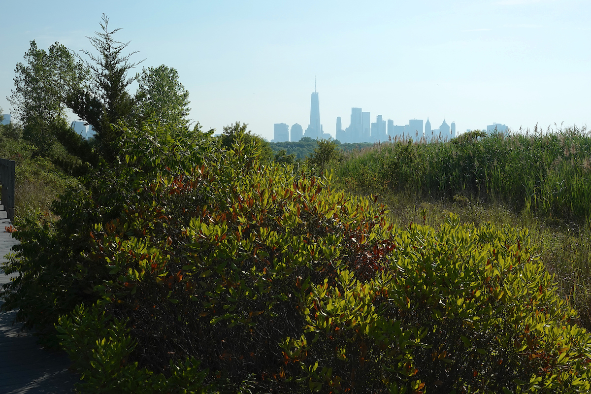 Situated on the park’s southern end, near a gated community called Port Liberte and Fireman’s Liberty National Golf Club, the peninsula is a sprawling wilderness of wetlands, with the beach on one side, a paved path on the other, and a winding boardwalk and nature trails connecting the two.