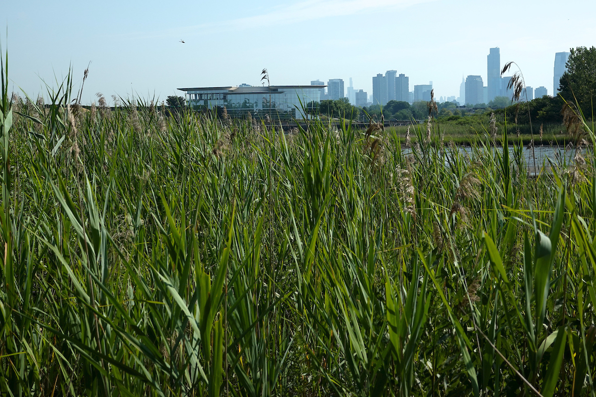 Birds fish in the flats and perch in the reeds, their calls the only sound breaking the silence of this nature preserve inside Liberty State Park. Snails called mud dog whelks that look like rocks tumble around the water’s edge. Seaweed scattered by the tides dries in the sun.